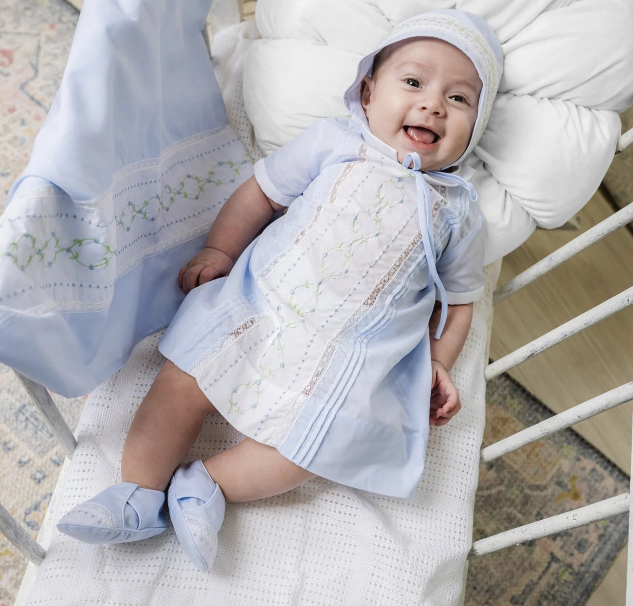 These darling baby booties feature that vintage look you love that never goes out of style! Lace and embroidery are hand-stitched
