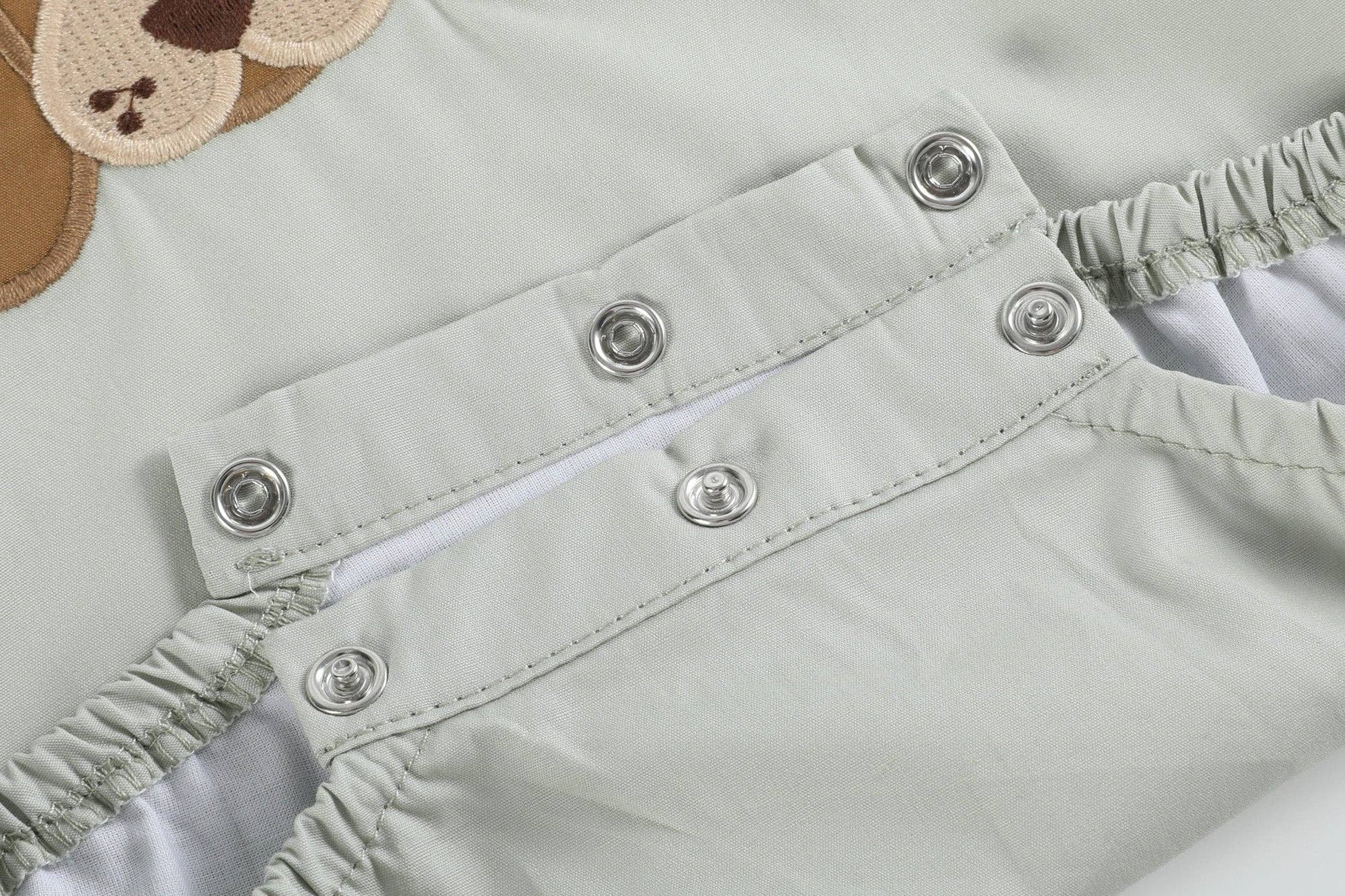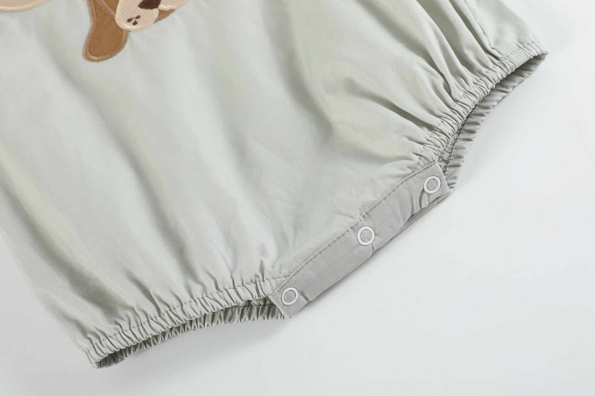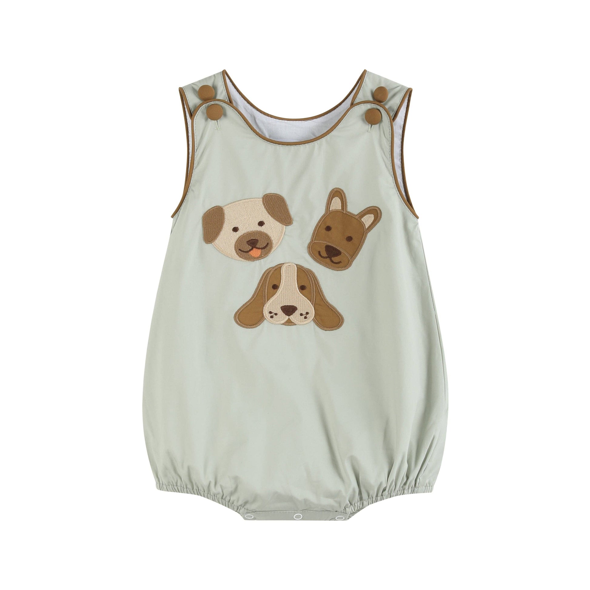This Green Dog Applique Bubble Romper is paw-sitively precious! It features cute puppy embroidery, and adjustable shoulder buttons, making it a must-have for any mini dog enthusiast.